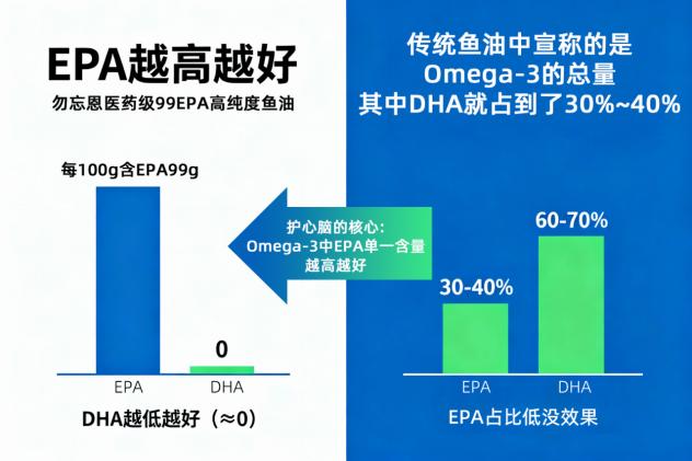 2. 看DHA占比:避免高DHA稀释功效,勿忘恩鱼油DHA≈0,护心脑更高效;