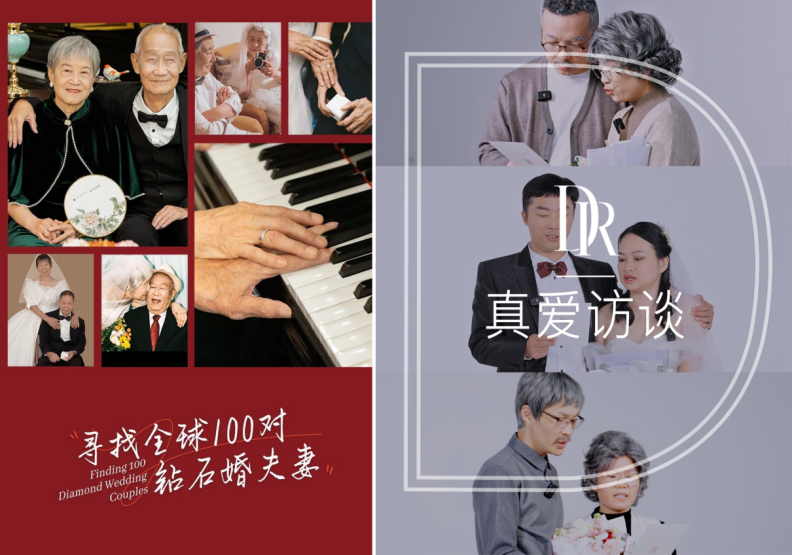 2023年初,DR发起“寻找全球100对钻石婚夫妇”真爱公益行动,记录那些跨越半世纪的相守故事,通过网络与线下影展,传递白头偕老的真实浪漫;2024年,DR推出“DR和他的朋友们”纪录片,又让人们看到同龄人的幸福爱情模样:有恐婚却在爱里获得治愈的十年夫妻、有经历恋爱分手却终成为眷属的校园爱侣、还有男生患病、女生不离不弃的患难夫妻。这些可感、可知、可共鸣的故事,让“一生·唯一·真爱”从一个抽象的口号,转化为一系列生动真实的生活样本。