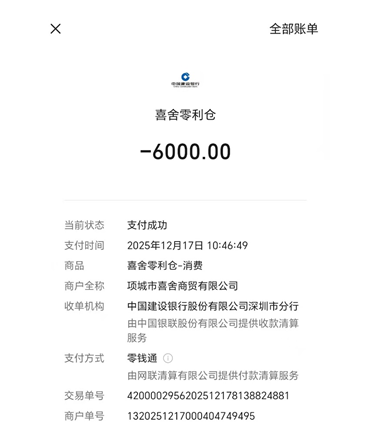 一方面,转股方案的资金流向为,新的股金需打入河南喜舍公司的收款码。另一方面,所谓的“分红”并非由公司直接发放给投资者,而是先由总公司打至各地区负责人的对公或私人账户,再由负责人通过微信转账的方式向下分发。更值得注意的是,增股转账记录显示是购物消费,而非参股信息。