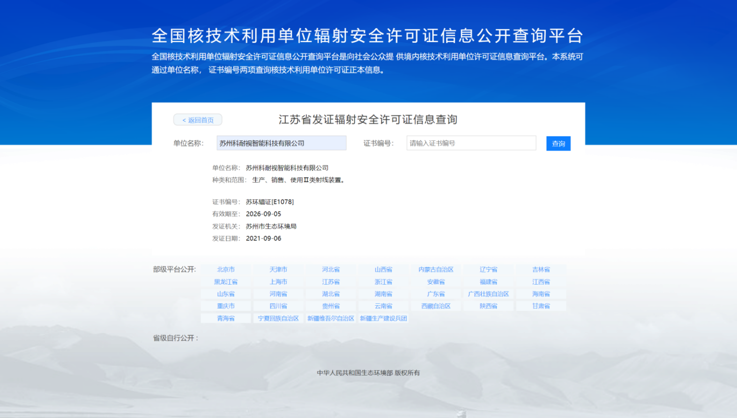 (全国核技术利用单位辐射安全许可证信息公开查询平台)