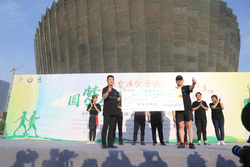 丛台酒业销售有限公司总经理郭维(前排右)参加丛台酒业公益徒步行活动。