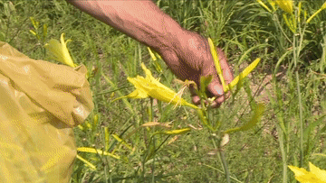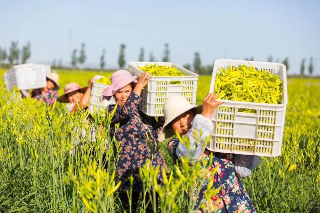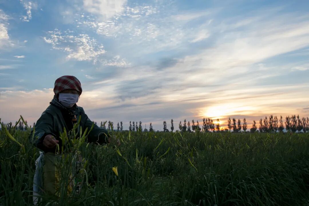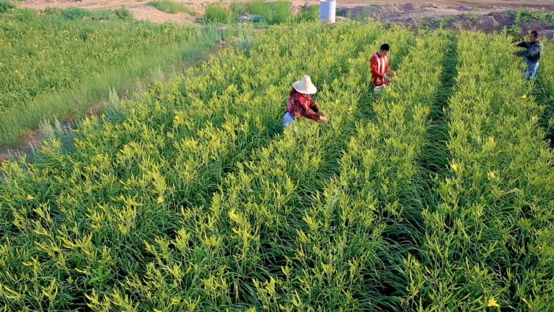 西坪镇唐家堡村的农户在采摘黄花。新华社 发