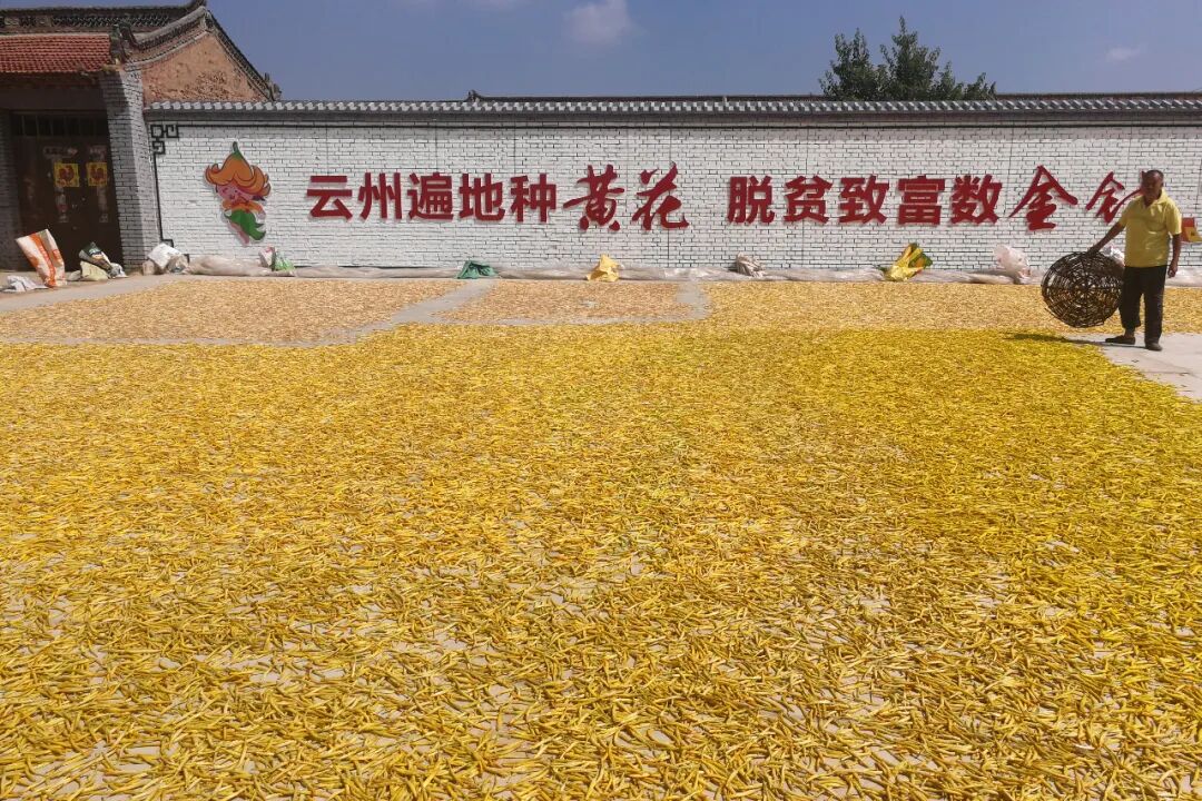 种植户在大同市云州区西坪镇下榆涧村晾晒黄花。新华社 发