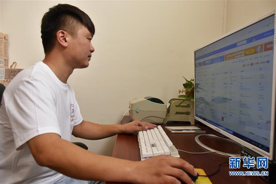 7月8日,张亚钊在处理网络订单。 新华社记者 韩朝阳 摄