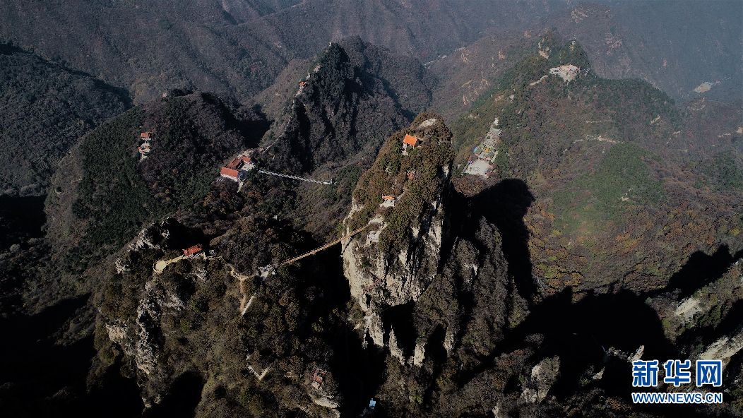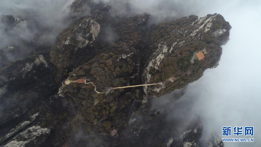 无人机视角下的五老峰,展现雄伟身姿。新华网 发(陈春明 摄)