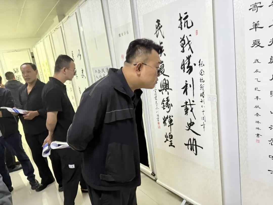 开展以来,职工观展的热情更是超出预期。观展现场,随处可见职工热情投入的身影:有人举起手机,对着心仪的作品多角度拍摄,不仅要存下画面,还要分享到家庭群、朋友群,骄傲地“炫耀”公司职工的艺术才华;有人认真阅读作品旁的文字介绍,时不时还和身边的同事交流:“这幅《旗映山河》画得太有感染力了,让我想起了课本里的历史故事”,有的职工议论:“写的真好哇,咱们公司人才真多呀。”还有的职工说:“本来只是看到办公楼的海报有书画展,过来凑个热闹,没想到一下子就被吸引住了!”