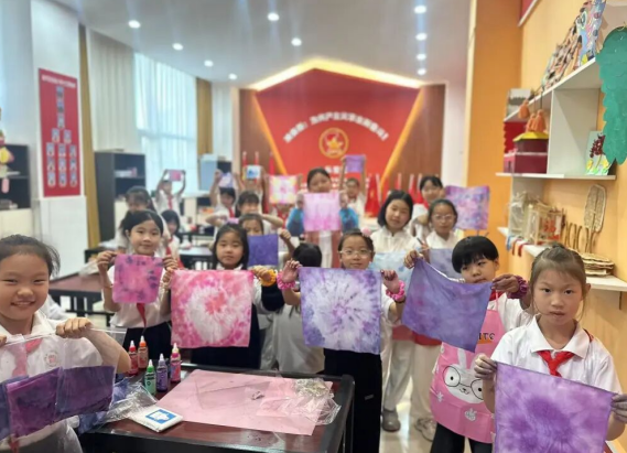 作为 “非遗进校园” 的重要载体,扎染社团为孩子们搭建起感受美、创造美、传递美的平台。传统文化在动手实践中浸润童心,让千年技艺在校园绽放新的光彩。