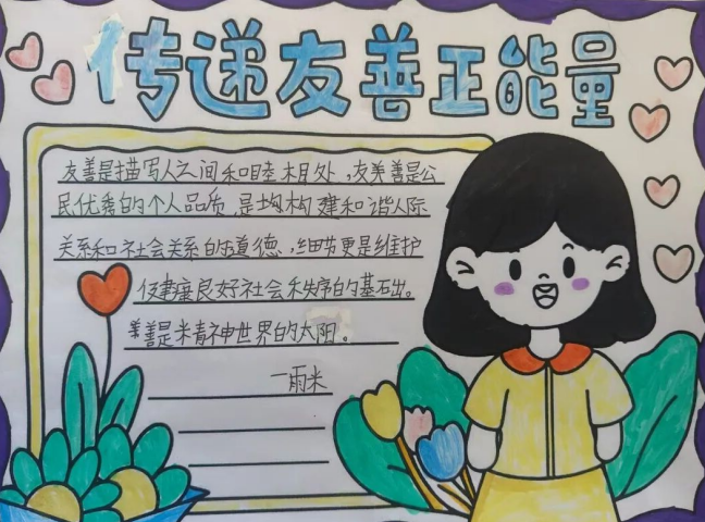 各班级通过主题班会,组织学生开展故事分享、情景模拟、小组讨论,在互动中畅谈身边的友善小事,学习与人相处的温暖之道。同学们还亲手绘制友善主题手抄报,写下温馨寄语,在课间相互赠送,让手抄报成为传递友谊与善意的桥梁。