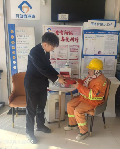 活动现场暖意融融,工作人员热情引导前来的劳动者入座休息,递上温热饮用水,细致介绍港湾各项便民服务功能。同时,支行特意为每位到场的外出工作人员准备了定制暖心礼包,礼包内含实用生活物资,切实解决劳动者户外工作的日常所需。收到礼物的劳动者们纷纷点赞,直言“建行的服务太贴心了,不仅有地方歇脚,还惦记着我们的需求,心里特别暖”。