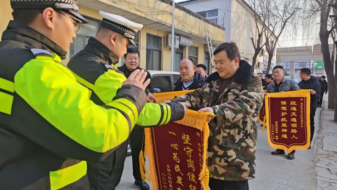 这次,鸡泽县浮图店镇南庄村、黄沟村、西庄村、东柳村、浮东村、浮西村等十个村的村民联合起来,一起到中队给民警们送上了锦旗,来表达他们对民警们的感谢。