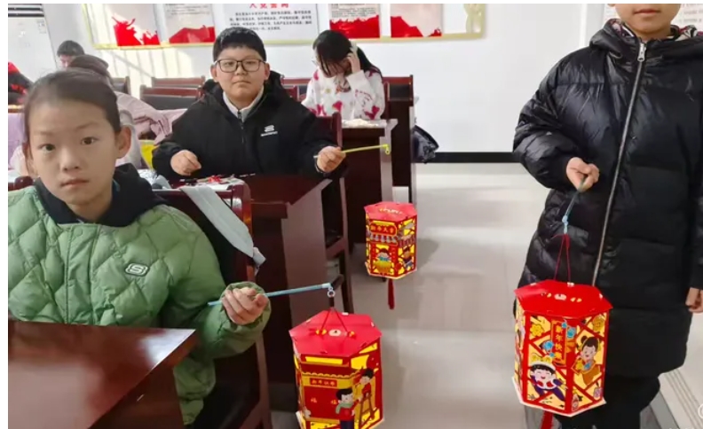 当一盏盏红彤彤的灯笼点亮,孩子们兴奋地举起自己的作品展示,脸上满是自豪与喜悦。小小的灯笼,不仅承载着孩子们的创意与巧思,更寄托着对新春的美好期盼,让传统文化在动手实践中得以传承,让年味在欢声笑语中愈发浓厚。