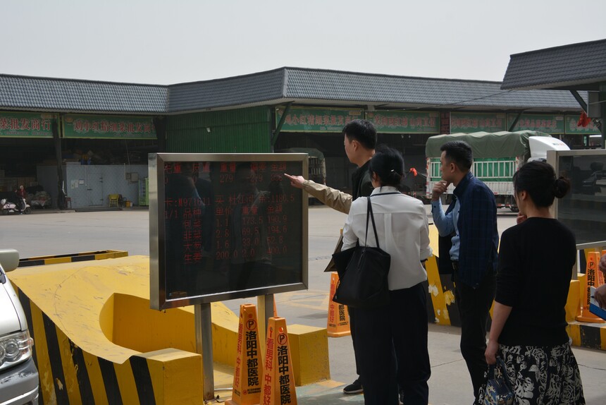 中原新闻网洛阳讯(张泽宇 卢班)4月11日上午,由四川省宜宾市市场监管局机关党委书记王庆红带队,一行十三人到洛阳通河农贸城就食品安全溯源系统深入合作事宜进行进一步沟通参观学习。洛阳通河农副产品有限公司党支部书记、副总经理王泽军、副总经理张爱芬陪同。