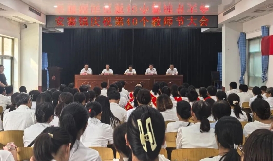 9月9日,安寨镇召开第40个教师节庆祝大会。镇党委书记胡海波、县教体局一级主任科员吴志宏、安寨镇一级主任科员贾书国、安寨校部党总支书记龙成新等在主席台就座。各小学校长、幼儿园园长、捐资助教先进个人及教师代表共计160余人参加了庆祝大会。大会由安寨镇一级主任科员贾书国主持。