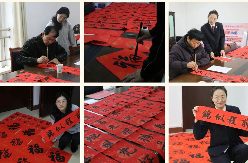 活动室里,墨香四溢。曲周县检察院特邀的两位书法家展纸伏案,挥毫泼墨,将美好的祈愿倾注于一笔一划之间。“法治雨露润华夏,正义春风暖神州”“院内梅花开五福,庭前竹叶报三多”……一句句真挚的祝福跃然纸上,平仄中饱含对健康平安的祈愿,撇捺间倾注对国泰民安的寄语。