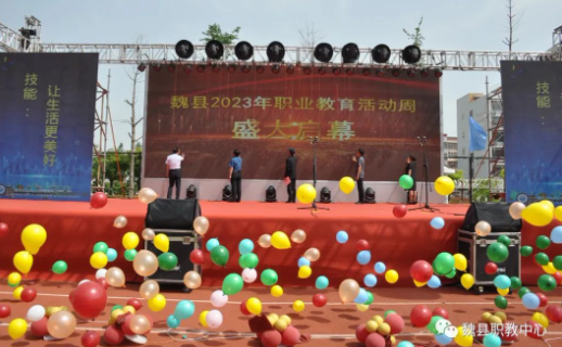 5月14日上午,魏县2023年职业教育活动周启动仪式在魏县职教中心举行,县政府办二级主任科员郭常明,县教工委书记、教体局党组书记、局长陈海林,县教体局副局长李志永,县政府办、县委宣传部、县委网信办、县人社局、县发改局、县农业农村局、县总工会、团县委等单位分管负责同志,县职教中心、邯郸市文侯中等职业学校负责同志,以及各公办、民办初中学校校长、县职教中心全体师生等参加了启动仪式。