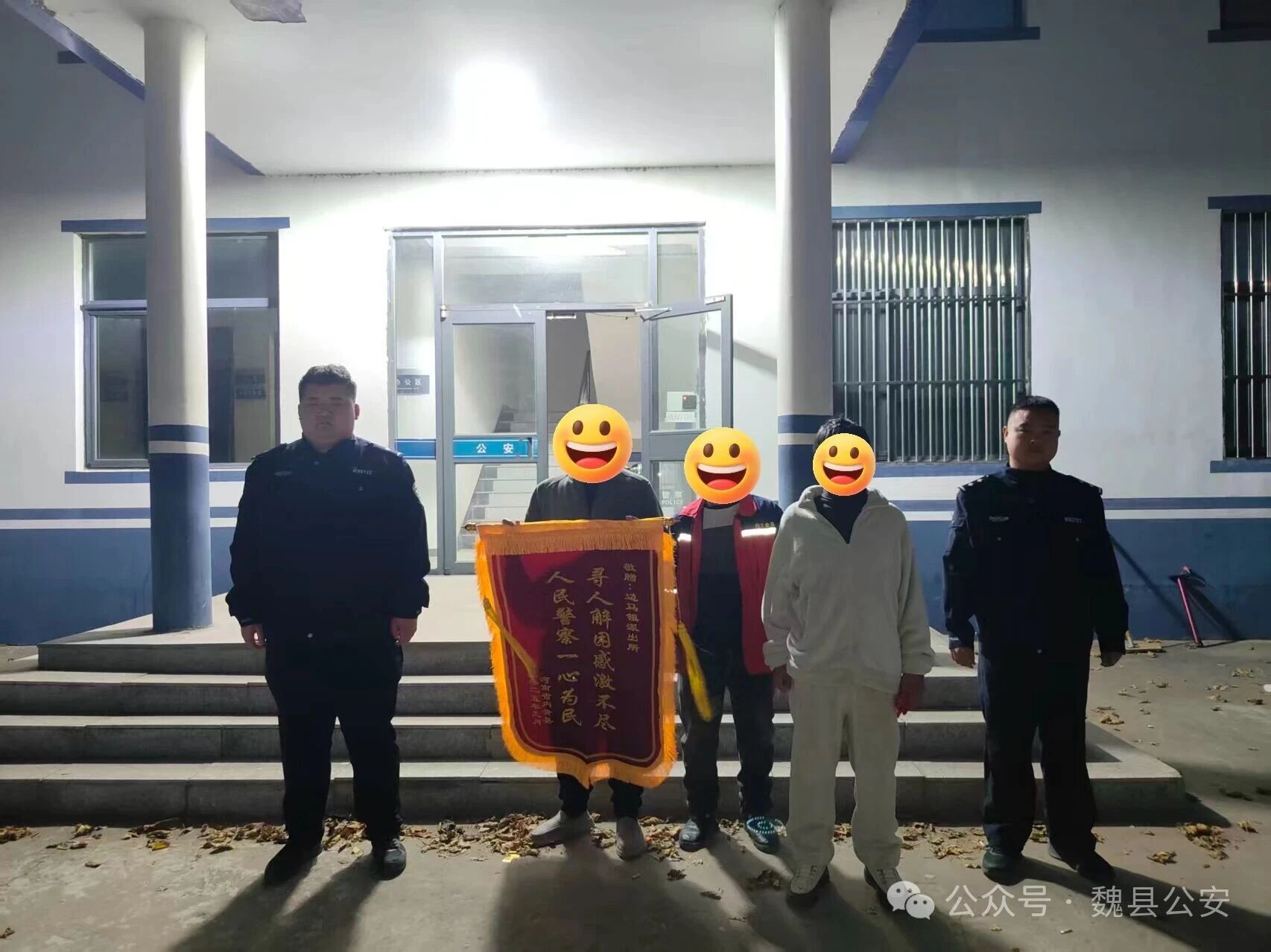民警一边联系辖区村庄和附近派出所,一边通过刷抖音、微博等方式查看在网络上是否有该男子的寻人启事,通过大量工作,最终找到了该男子的家人。该男子系河南省内黄县人,于11月10日14时许,骑着自行车从家中出门后走丢,其因智力障碍记不住家属联系方式。后其家属来到派出所将该男子接回,并对民警认真负责、主动为民服务的举动表示感谢。
