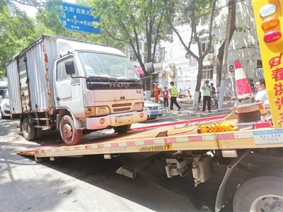 在对车主详细宣讲市区僵尸车治理政策后,车主表示配合治理,同意警方将车按程序拖走。随后,为节省时间,交警变身“装卸工”,主动协助车主卸货。