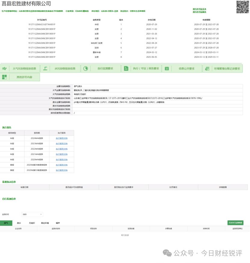 3、“隐身”的数据背后,是否存在监管的“默契”? 对于宏胜建材自行监测数据的公然缺失,当地的环保监管部门是真不知情,还是“睁一只眼闭一只眼”?是否曾依法进行过现场核查与严厉处罚?