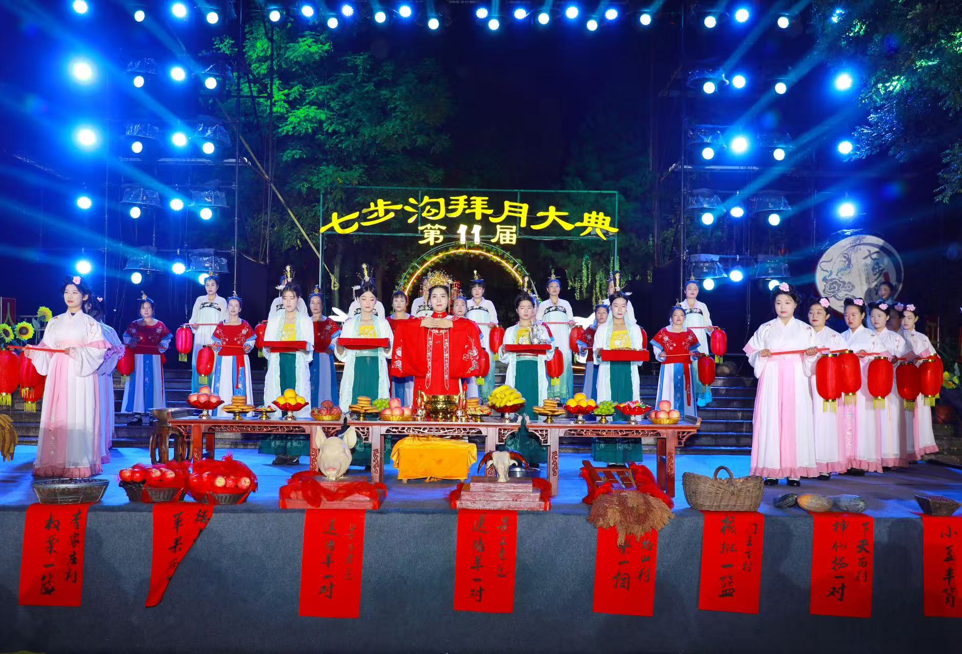 中秋节是我国仅次于春节的第二大传统节日,拜月赏月是重要的节日习俗。远古先民从对月亮的崇拜,发展到后来少女们向月亮祈求娇美容颜,至今已有数千年历史。七步沟景区自2015年开始举办中秋拜月大典,今年已经成功举办十一届。这项将古典仪式与现代舞台艺术深度融合的文化盛宴,不仅为游客带来了震撼的视听体验,也已成为华北地区一张靓丽的中秋文化名片。