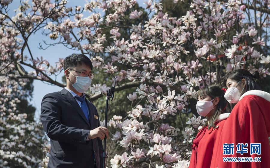 3月9日,游人在云南省曲靖市陆良彩色沙林风景区观景。 初春时节,云南省曲靖市陆良县彩色沙林的鲜花陆续开放。该沙林分布在峡谷中,总