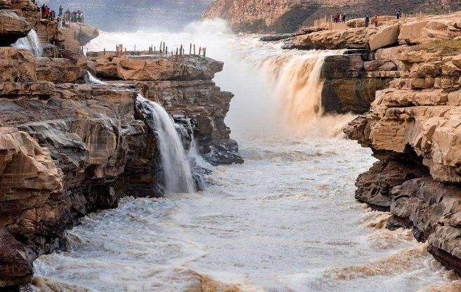 八月十五日,壶口唢呐艺术团在吉县黄河壶口瀑布景区为游客表演。入秋以来,受上游降雨和水库泄洪影响,吉县黄河壶口瀑布水量大增,主副