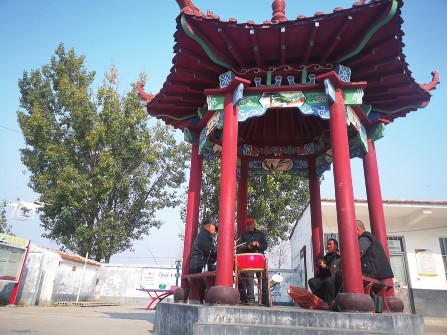 11月17日,在高新区许营镇崔庄村文化活动广场,数名传统艺人吹拉弹唱,为村里的老人表演节目。近年来,许营镇加强对中华优秀传统文化的